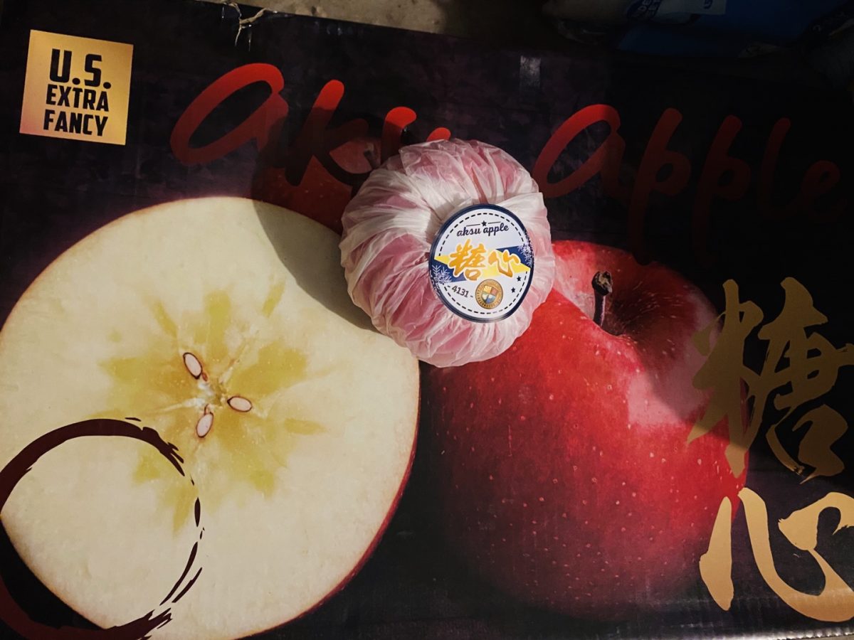 进口蜜苹果,又叫  Aksu Sweetheart Apple 蜜心苹果。一箱15颗。毛重10磅,净重 9-9.5磅。团购价 $22/