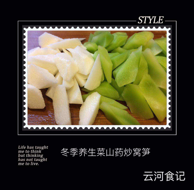 发布于2015年11月20日2015年11月24日 由亚特兰大生活网冬季养生菜山药炒莴笋 食材:窝笋0.5磅、山有0.5磅。 調料:橄欖油、鹽、麻油半调更。 製作: 1.將所有食材切滚刀块。 2. 大火,將所有食材倒入溫油鍋內,溫油一鍋炒!加入鹽,翻炒2一3分鐘,再加入1/3杯(cup)冷水後煮1一2分鐘后,淋上麻油稍加搅拌即可起鍋。 此菜:色澤清雅靚麗,口味清香撲鼻,味道鮮美爽口。菜色搭配營養健康,理念時尚。是上班族最為簡單方便,又極易製作的美味健康家常菜。 简单操作,健康饮食。 时尚享饪新概念:温油一锅炒!
