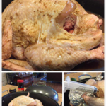 1.先将火鸡洗净沥干,再将2一3包盐焗粉放入1.5一2杯(cup)里搅拌溶化,用注射器从鸡的鸡肉处分别注射火鸡的不同部位,包括鸡翅和鸡腿,再用2包盐焗鸡粉均匀的涂抹在整只火鸡表面,腌制12个小时后,到掉腌制后流出来的腥水,用刷子每隔12个小时在火鸡表面刷一层韩国烤肉汁,一共刷2次,总共腌制36一48小时即可烘烤。